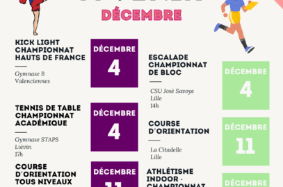 Voici les activités de la FFSU-Lille en Devembre ! Pour en savoir plus