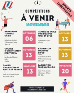 Voici les compétitions à venir en individuel pour le mois de novembre !