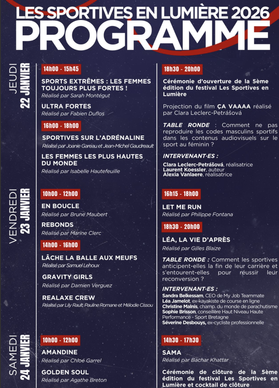 20 Jan 2026 Festival « Les sportives en lumière » – événement gratuit organisé par l’Association Alice Milliat. par fgayez59 | Classé dans : News | 0 https://www.helloasso.com/associations/association-alice-milliat/evenements/festival-les-sportives-en-lumiere-2