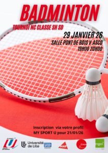 LILLE,Promotion – Département + NCle 20 NOVEMBREInscriptions jusqu’au 19 novembre via votre espace licencié MY SPORT U |