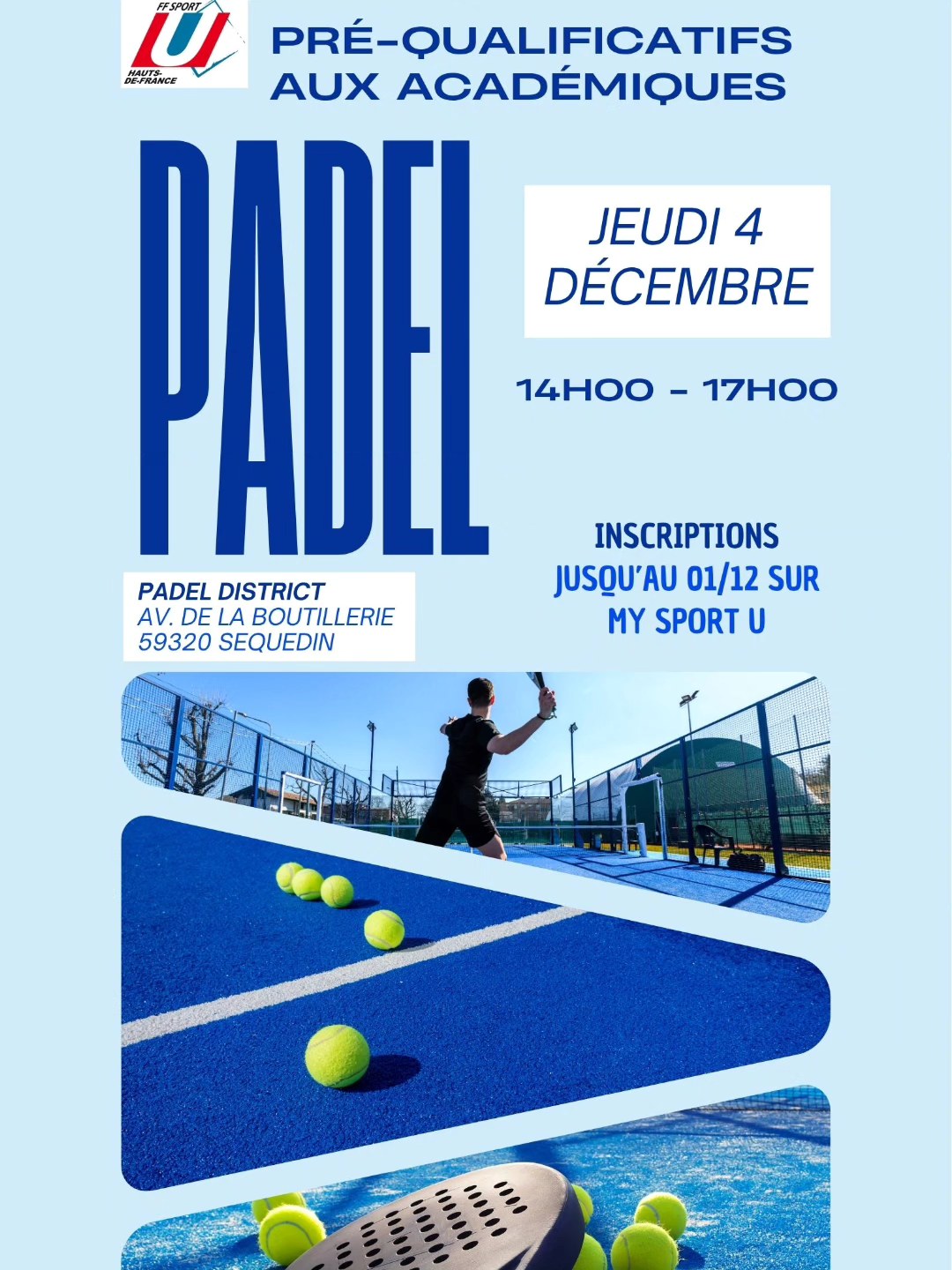 Lieu : Padel District, avenue de la boutillerie 59320 SEQUEDIN