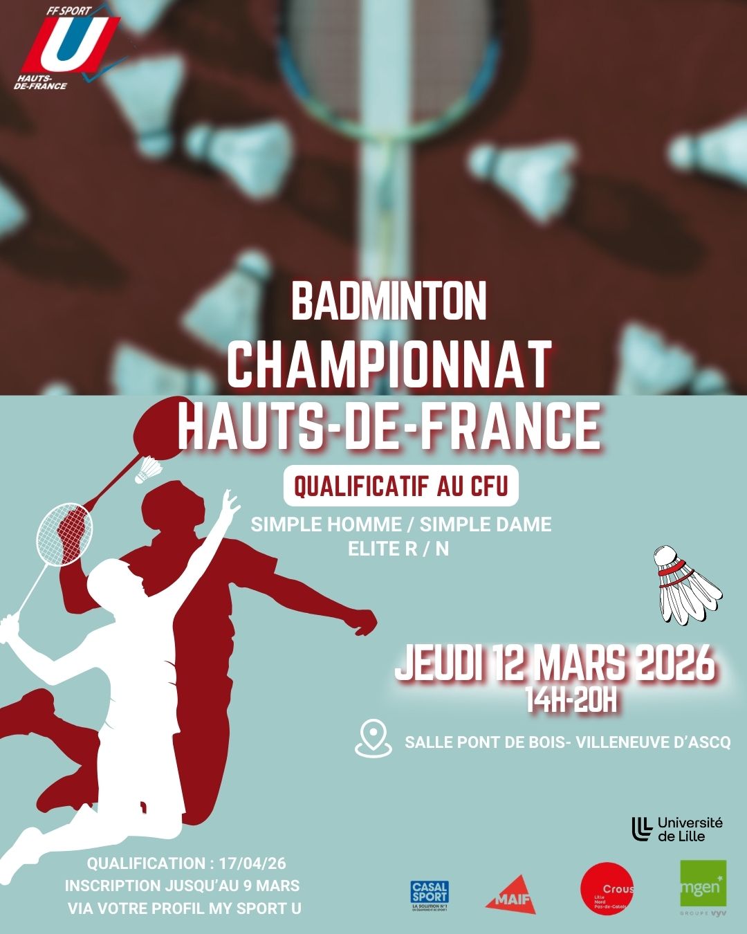 LILLE,Promotion – Département + NCle 20 NOVEMBREInscriptions jusqu’au 19 novembre via votre espace licencié MY SPORT U |