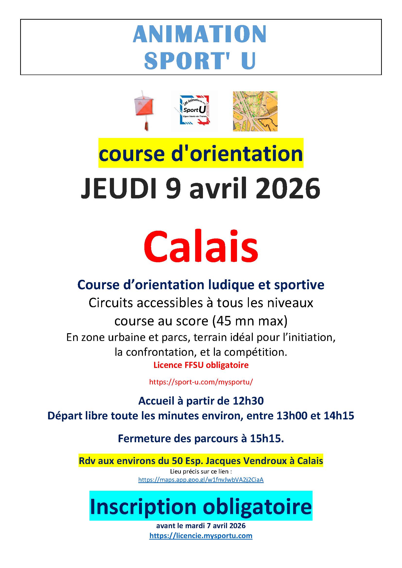 SPRINT LONG Ouvert à tous CALAIS Zone Urbaine |