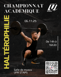 Lieu : Salle du muscu – UFR STAPS Date: 6 Novembre 2025 Inscriptions : |